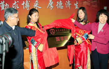 靳琦副书记宣读了《关于成立北京中医药大学太阳成集团tyc41183的决定》、《关于成立北京中医药大学中医药文化研究院的决定》等文件。吴建伟书记、卢国慧司长为太阳成集团tyc41183揭牌。