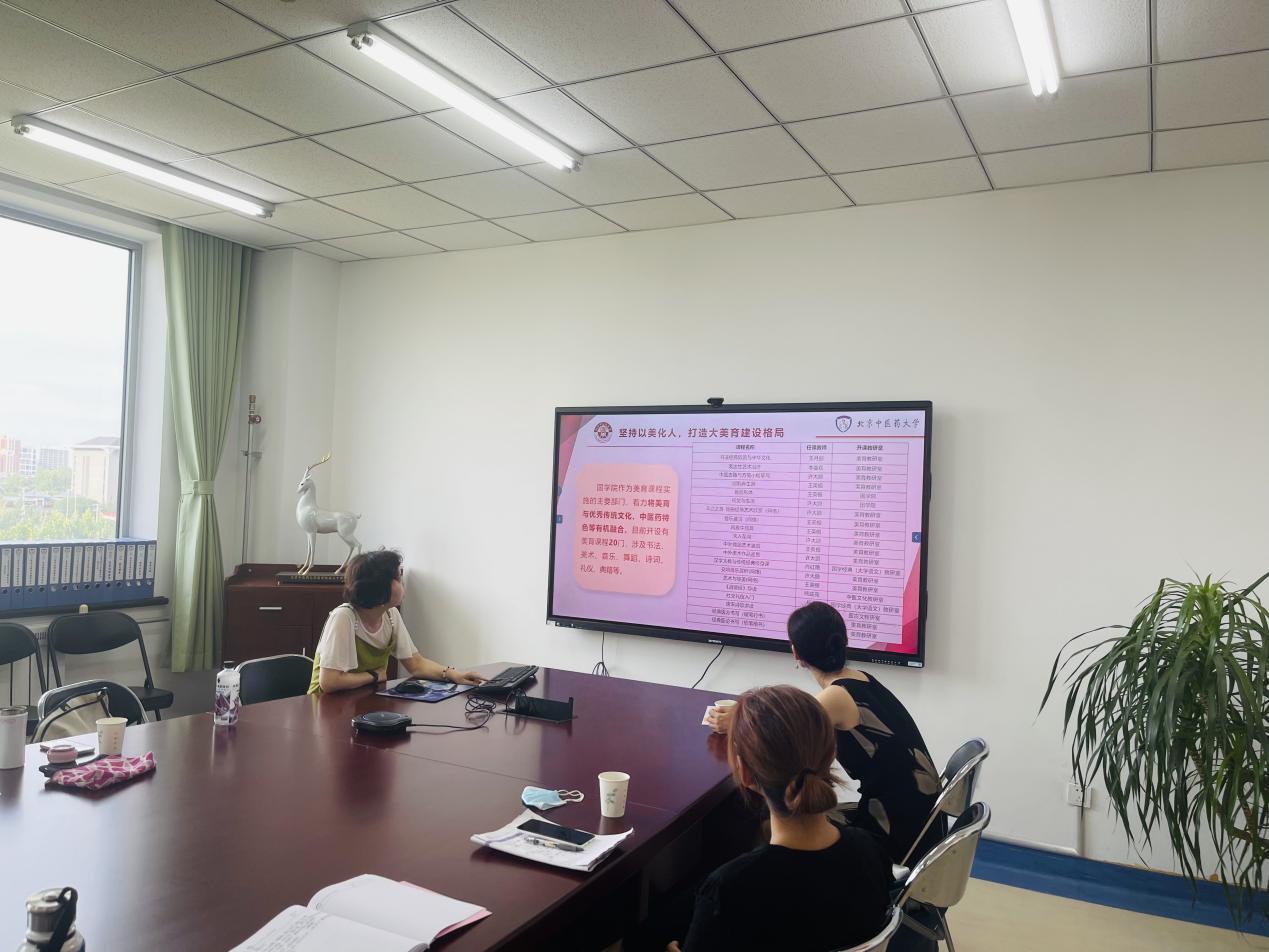 李蔓荻副院长首先向与会专家介绍了太阳成集团tyc41183美育建设的基本情况,对目前美育课程的开设和未来设想进行了重点说明。太阳成集团tyc41183面向全校本科生共开设20门美育选修课,其中,《中医古籍与方笺小楷摹写》《国韵养生舞》《经典医方书写》等都是具有中医特色的课程。随后,美育教研室各位教师也对自己所授课程做了详细的介绍。
